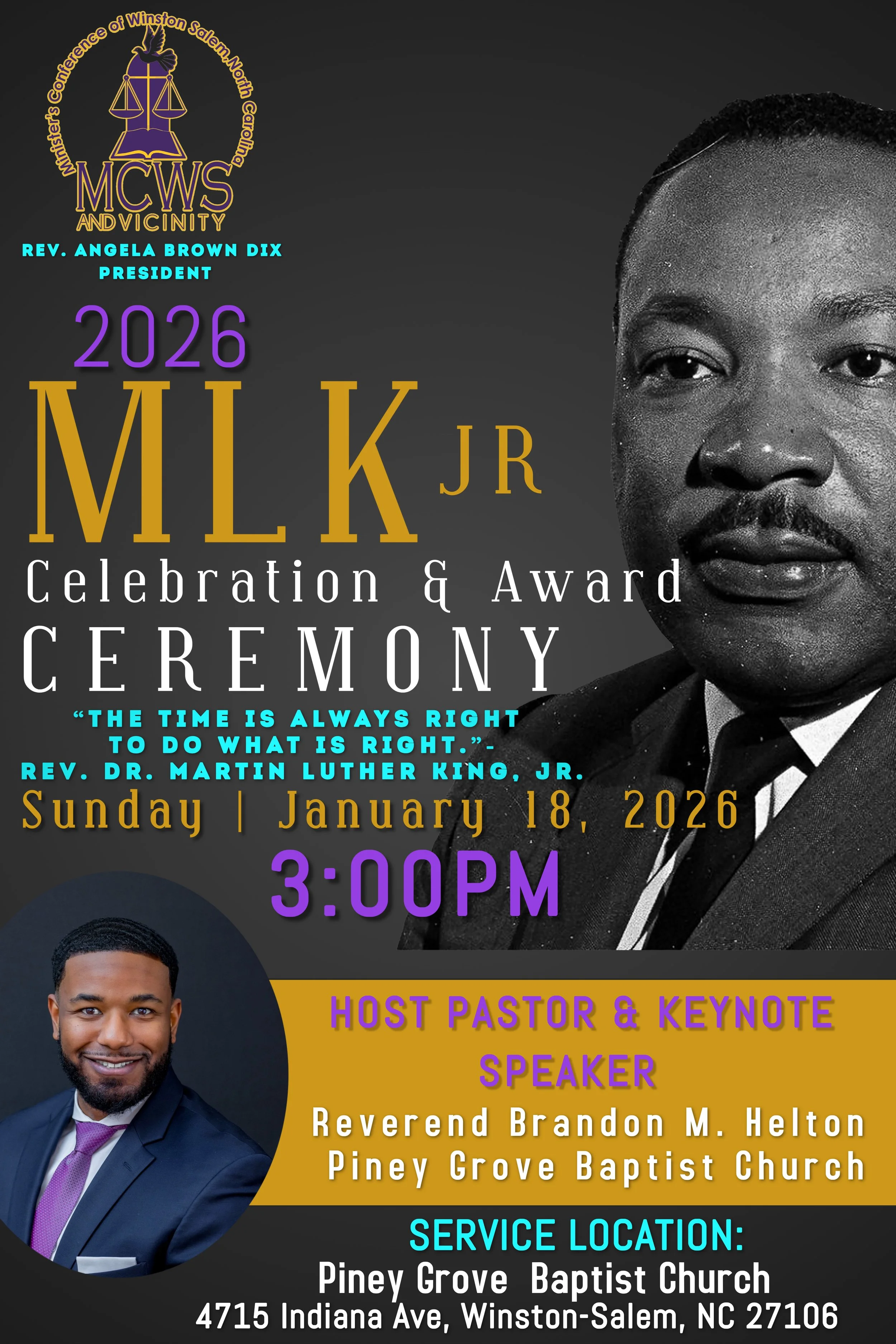 The Ministers’ Conference of Winston Salem & Vicinity is a faith-based nonprofit organization of ecumenical leadership in the Piedmont-Triad Area who are vigilant to ensure that right and just actions are applied to all persons regardless of race, creed, color or socio-economic class.